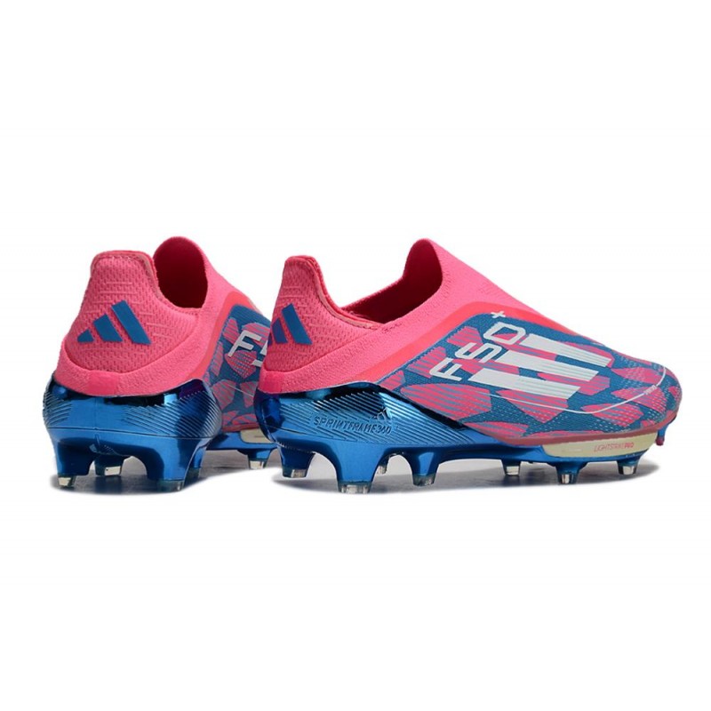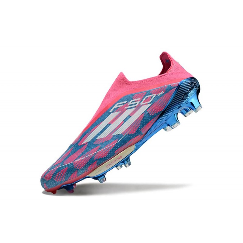 Botines adidas F50+ Laceless FG Solar Azul Ftwr Blanco Solar Rosa