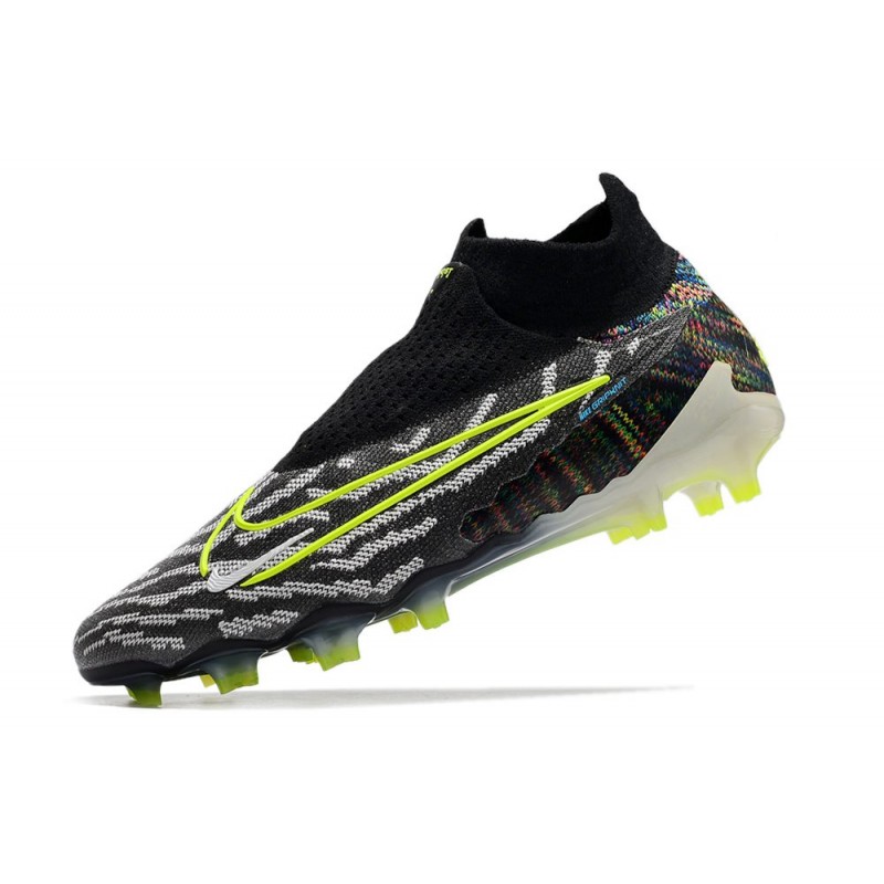 Bota de fútbol Nike Phantom GX Elite DF FG Negro Voltio Blanco Azul Glow